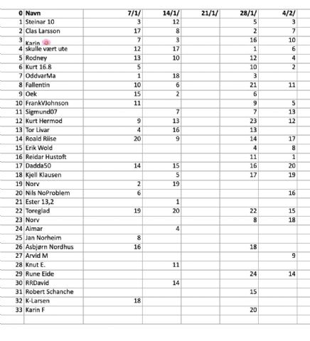 Seniorserie Simulator – Resultater